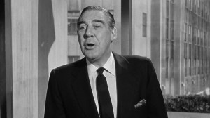 Holliday glows in another pitch-perfect performance, re-teamed with Douglas eight years after they worked on Broadway in “Born Yesterday” (in the 1950 movie version Douglas was replaced by Broderick Crawford), and their chemistry is a win. Another plus is that the lineup of corporate connivers are personified by John Williams, Fred Clark, Ray Collins and Ralph Dumke. The show isn’t particularly surprising in setup or wrapup, and is not what you’d call hard-hitting (you could only obliquely indict the system without being accused of being a Commie–and, speaking of wallowing in deceit, the all-mighty Pentagon may as well have been the Taj Mahal) but it’s consistently amusing. The easy excuse you need to watch: it’s another of only nine movies blessed by Judy Holliday. *