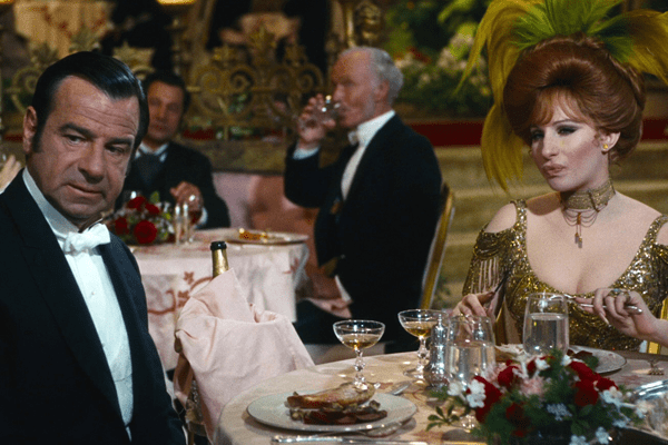 Thornton Wilder’s 1954 play “The Matchmaker” begat the 1958 movie of that name with Shirley Booth. Six years later a musical version debuted as the play “Hello, Dolly!” with Carol Channing, slamming down a record 2,844 performances. Then Louis Armstrong had a #1 hit with the title tune in 1964: he appears in the movie to join Babs with the signature number, easily the best in the array—and the only one you can hum or sing along with.