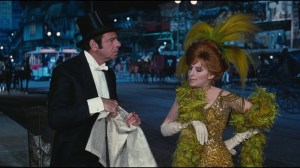HELLO, DOLLY!, a leviathan musical from 1969, unlimbered 148 minutes of big crowd scenes, elaborate sets, colorful costumes and brassy song & dance numbers. The horrendous cost ($23,335,000, topped only by Cleopatra) bled enough red ink to nearly submerge 20th Century Fox, already bailing bilge from the instant dinosaurs Doctor Dolittle (1967) and Star! (1968) and a slate of budget-bloated audience-avoiding misreads like Justine and Staircase. As with Dr. Dolittle and Star!, intense studio lobbying ginned up undeserved Academy Award attention to hopefully goose receipts and shuffle blame. Bolstered by new star Barbra Streisand’s hit Funny Girl, popular co-star Walter Matthau’s in The Odd Couple and a publicity campaign you could see and hear from the Moon, it did make enough to wallow into the year’s #5 spot and eventually collected $43,400,000. But unless you’re a Streisand disciple—and she wasn’t nuts about it, either—it’s a blimp, a beached whale. *