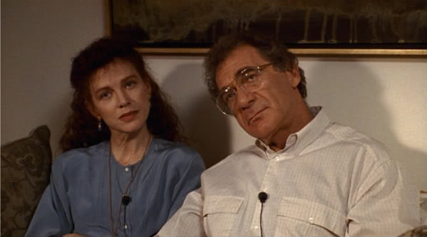 Jack & Sally. Gabe & Judy. Jack & Samantha. Sally & Michael. Gabe & Rain. Michael & Judy. Gabe. When ‘Jack and Sally Simmons’ (Sydney Pollack and Judy Davis) go the civilized grown-up route and in person tell longtime close friends ‘Gabe and Judy Ross’ (Allen and Farrow) that they’re separating, the partnership ball starts a wobbling roll toward tenpins in several lanes. High-strung Sally loses whatever cool she possesses when Jack goes dallying with ‘Sam’, a younger knockout (stunner Lysette Anthony, 28) who’s an aerobics instructor and astrology spouter. Judy introduces wounded, skittish Sally to ‘Michael’ (Liam Neeson, 39, about to break big), her shy, single and eligible co-worker. Against his better judgement college writing professor Gabe is drawn into something that flashes ROCKS, DEAD AHEAD! with young student ‘Rain’ (Juliette Lewis, 18, hitting stride), who hops with rabbit rapidity from one fixation to another . Then tables (astrological?) turn again. For the better, or just the more comfortable?
