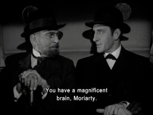 London, 1894. When justice fails and brilliant criminal ‘Professor Moriarty’ (George Zucco) gets off scot-free from a murder charge, he baits nemesis Sherlock Holmes. The dextrous deducer parries: “You’ve a magnificent brain, Moriarty. I admire it. I admire it so much I’d like to present it pickled in alcohol to the London Medical Society.” Soon after their encounter, antagonistic but civilized—they’re English gentlemen, after all—Holmes is approached by young ‘Ann Brandon’ (Ida Lupino) fearful over death-foreboding notes her brother has received. Taking her worries seriously, Holmes and loyal wingman Dr. Watson (Nigel Bruce) pursue the party or parties behind Ann’s panic, uncovering a trail of misdeeds that ultimately leads to the Tower of London and the Crown Jewels of the United Kingdom. Something dastardly is a(clubbed)foot.