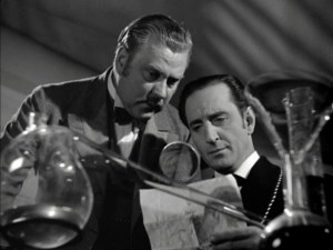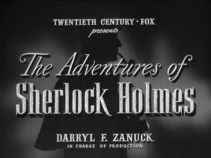 THE ADVENTURES OF SHERLOCK HOLMES, the second screen Sherlock saga starring Basil Rathbone, along with being a cracking good yarn, introduced the immortal pithy comeback “Elementary, my dear Watson.” The plushly appointed 20th Century-Fox offering started shooting right upon the completion of The Hound Of The Baskervilles and came out five months later than that one, in September of 1939, that monumental year for the movies and the woe-beset world that craved them. *