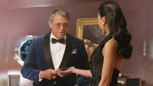 The British government tasks ‘Nathan Jasmine’ (Cary Elwes) with retrieving “The Handle”, an AI device that can out-think any extant security system. Ukrainian gangsters stole it, mega-rich arms dealer ‘Greg Simmonds’ (Hugh Grant) wants to sell it, and a host of wealthy cruds (bio-tech moguls) and a rogue agent are in on the scamper. Jasmine’s team is headed by top dog spy ‘Orson Fortune’ (Statham, 56), licensed to do whatever he feels like; ‘Sarah Fidel’ (Aubrey Plaza), a superwhiz hacker with a quip-ready attitude; action hero movie star ‘Danny Franscesco’ (Josh Hartnett), dragooned into service; and ‘J.J. Davies’ (Bugzy Malone), who is there for backup muscle, driving skills and because you can’t mount a modern action flick without a sullen rapper whose criminal background and ‘keeping it real’ (and insanely lucrative) can hopefully draw the young and clueless into a megaplex.