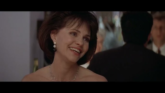 In San Francisco, voice actor ‘Daniel Hillard’ (Williams, 41) dotes on his three kids but his undisciplined nature regarding employment and household partnership practicality has driven his wife ‘Miranda’ (Sally Field, 46) beyond the exasperation point to the cliff of divorce. Granted by the court only one day a week to be with the kids, Daniel has a few months to get his act together with a place to live and gainful work. Desperation meets inspiration when Miranda takes out an ad for nanny. Using his voice skills, Daniel subverts that process, then goes full comickaze: with elaborate makeup he impersonates someone he creates on the fly, the elderly, widowed and Scottish ‘Euphegenia Doubtfire’. In true children’s book/movie pretend fashion, Miranda and the kids are fooled, and Daniel proceeds to not only see to them (while fixing up his dwelling and holding down a job) but charm them, and he becomes indispensable. He also hopes against hope to salvage things with his saddened but determined ex, especially when the now-unharried Miranda shows a more than passing interest in old friend, charmer ‘Stu Dunmeyer’ (Pierce Brosnan), who also hits it off with the children.