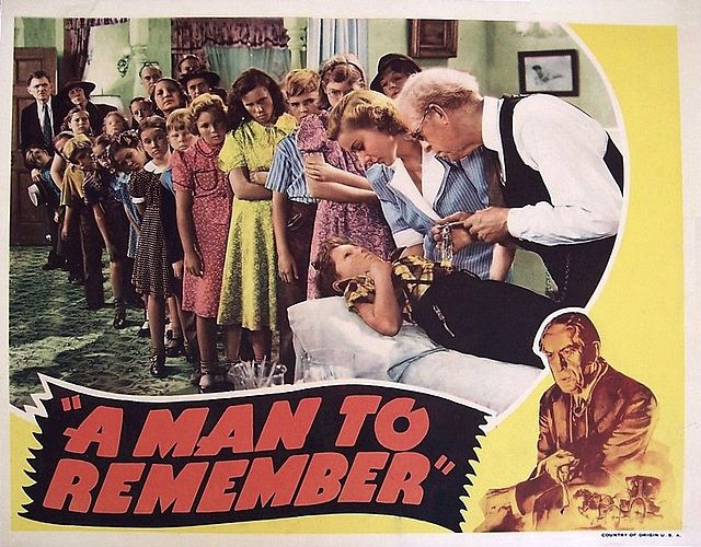A MAN TO REMEMBER, if you can find it, is a real treat from 1938, a modest B-picture shot in fifteen days for $118,000 by Garson Kanin, 25 years old, in his first go at directing. The script, an early effort from Dalton Trumbo, was based on a short story titled “Failure” written six years before by Katherine Haviland-Taylor. It was first filmed in 1933 as One Man’s Journey, with Lionel Barrymore and Joel McCrea. Well-reviewed at the time, A Man To Remember grossed $416,000 back in 1938, equivalent to $8,436,000 in 2025. Hassles over rights and ensuing negligence saw that original copies of the film’s negative were lost. In 2007 Turner Classic Movies restored the one surviving print, which has Dutch subtitles, rescuing the picture from oblivion after not being seen for seven decades. It’s a gem.