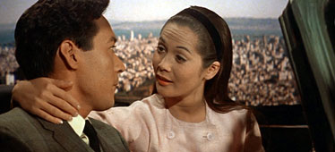 Following up on her bad girl-gone good in her captivating debut with the 1960 fave The World Of Suzie Wong, enchantress Nancy steals the screen in every scene she’s in, though her gold-digging Linda isn’t nearly as sympathetic as Suzie‘s honest hooker. Handsome, readily likable Shigeta makes a sympathetic lead; that year he also featured in Bridge To The Sun and Cry For Happy. Umeki charms again as she did in her Oscar winning Sayonara, and the much-missed comedian Jack Soo has fun as the rascal of the piece. The good vibes from the cast carry the so-so script, only faltering in that weak third act. Vibrant colors in the art direction and set decoration are a major plus; one sequence after another delivers rich eye candy.