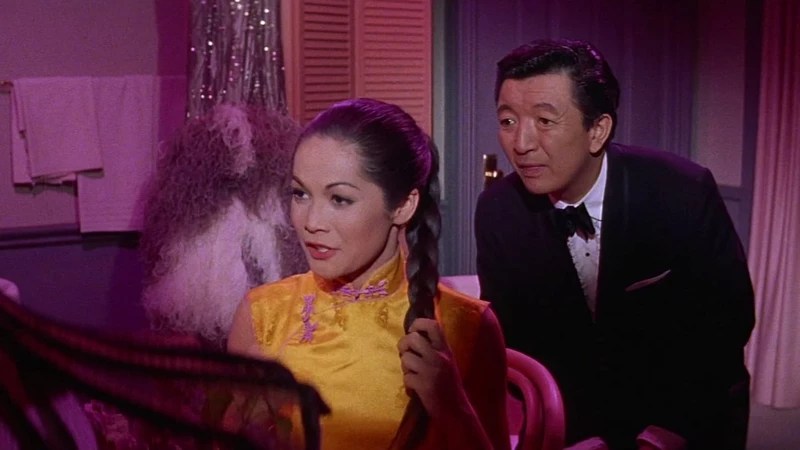 Ship-smuggled Chinese immigrant ‘Mei Li’ (Miyoshi Umeki) and her father make it to San Francisco with the promise of Mei Li’s arranged marriage to US-raised ‘Sammy Fong’ (Jack Soo). But nightclub owner and playboy Sammy has been playboying with foxy showgirl ‘Linda Low’ (Nancy Kwan). Taking temporary residence in the home of tradition-honoring ‘Master Wang’ (Benson Fong), Mei Li becomes enamored with his thoroughly Americanized son ‘Wang Ta’ (James Shigeta), but he’s gaga over Linda. Complications are more numerous than ingredients in Moo Goo Gai Pan, and over the course of more than a dozen songs and dance numbers, after some hurt feelings and misapprehensions, the right mates find their proper destinies.