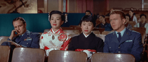 Stage & TV comedian Buttons, 38, was billed as “presented” in this role. Later in his career, he’d tend to irritatingly mug (Hatari!, Stagecoach, The Poseidon Adventure) but he’s good here, and Japanese singer Umeki, 28, is winning; they came away with Oscars for their supporting performances. Canadian-born Owens, is very good. 32, she’d been acting in England for 14 years; 1957 gave her an American introduction with this, Island In The Sun, also a big hit and the well-done No Down Payment. Interned in the States during WW2, Miiko Taka, 31, debuted in her role, and does very well.