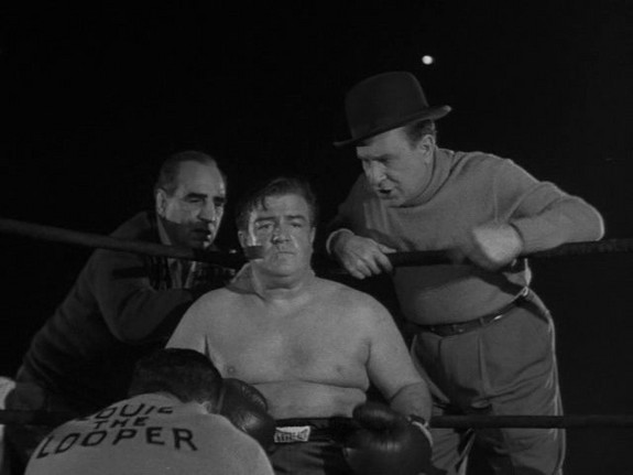 Bud & Lou, just graduated from detective school (like there is one) get an immediate pressing case with ‘Tommy Nelson’ (Arthur Franz, troubled as usual) a boxer being framed for a murder. Tommy’s fiancée (nondescript Nancy Guild) has a scientist uncle who’s developed a serum that zap-induces invisibility. Tommy injects it to hide from cops while he and our heroes look for the real killer. The trouble is that the serum’s side effect can produce insanity. Like voting.
