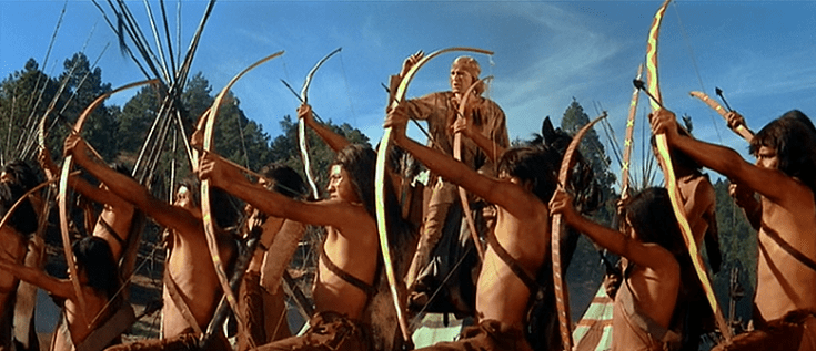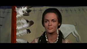 AND YET—hold your Horse, man. Civil disobedience ambushed the world premiere in Minneapolis with picketing, AIM (American Indian Movement) members blocked the ticket office, there were even bomb threats. While—though wokies won’t wake to it—the ordeals undergone by captives of some tribes could be truly horrible, the gory rite as depicted in the movie was not practiced by the Sioux. The final battle with the Shoshone is appropriately furious, but also spurious, with the Euro-bred Brit taking instant command and ‘teaching’ the Sioux how to line up infantry-style to repel a mounted charge: puh-leeze. A handful of Native Americans served as extras along with a mostly Mexican contingent, while the leads were put over by an Australian (Anderson), a Fijian (Tupou), and a Greek (Tsopei). The imposing Tupou had acted with Harris on the epic Hawaii and the stunningly pretty Tsopei had been 1964’s Miss Universe. Granted, she’s ravishing enough to be mutilated over, even if the screenplay serves not truth but trend.