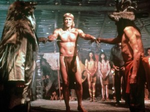 1825. English lord ‘John Morgan’ (Richard Harris, 39), on a hunting trip in the untamed West, is captured by a band of Sioux braves and taken, naked and battered, to their camp. He’s presented as a gift laborer to ‘Buffalo Cow Head’ (Judith Anderson, 71), mother of the chief ‘Yellow Hand’ (Manu Tupou, 33) and maiden daughter ‘Running Deer’ (Corinna Tsopei, 24). After ample abuse, with escape highly unlikely, Morgan, mockingly christened ‘Horse’, determines to survive, adapt and eventually win his freedom. First, unarmed, he kills two Shoshone scouts in hand-to-hand combat. Then he asks for the hand of Running Deer (one look at Tsopei makes that readily understandable) but before their tepee union is consummated he must undergo the Sun Dance ceremony. The agony of that passage into bloodied-brother acceptance from the tribe is followed by the return of the Shoshone—in force.
