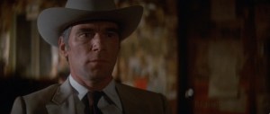 On the definite plus side, besides Hall’s visuals, there are vital performances from the actors. Though Guercio and the writers stick the cast with gobbledygook that verges on embarrassment, the game players come thru primed and eager. Flanking the mercurial Blake are two wily old pros, two emergent talents and one more who’d been around for a decade without a decent chance to shine. Dependably quirky Royal Dano, 50, gets a nifty scene as an exasperated coroner, and Elisha Cook Jr., 69 and odd as ever, pulls out the stops as a brain-baked shack dweller who’s been up one too many parched arroyos. Rock-visaged Mitchell Ryan, 39, boils with repressed rage as the supervisor; he was busy that year in Magnum Force, The Friends Of Eddie Coyle, High Plains Drifter and a one-season TV cop show called Chase. Memorable from Five Easy Pieces, Monte Walsh and The Culpepper Cattle Co., Billy Green Bush, 37, cuts up and melts down as John’s dopey partner. As the sex-bomb barkeep who plays the macho men like disposable boytoys, Jeannine Riley, 32, best known for TV silliness (Petticoat Junction, Hee-Haw) gets to vent years of waste in a lacerating screed on the cost of missing the proverbial bus. As to Mr. Blake, 39 here, this role gave him ample room to flex the twin sides of his acting persona, a compelling yet frustrating blend of sincerity and showboating. After his career-salvaging turn in 1967’s In Cold Blood, this is one of his better pieces of work; he’s in nearly every scene. *