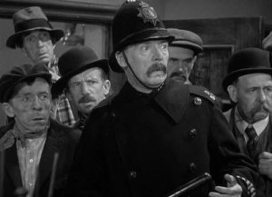 The cherished oldie is a mix of marvelous and age creaky. Sherriff’s script and Whale’s handling wisely use an ample amount of humor–the basic setup being so obviously preposterous that playing it entirely straight would be too much to accept, chuckles balancing the thrills from the (still very impressive) visuals. The archaic end is in the simplistic ‘science’ and the stagy acting from the chief supporting players Gloria Stuart (23, sixty-four years away from being ‘found’ in Titanic), Henry Travers (13 years before ‘saving’ Jimmy Stewart in It’s A Wonderful Life) and William Harrigan. Whale was tickled by Una O’Connor (later deploying her in Bride Of Frankenstein) and reviews always praise her comical innkeeper’s wife, though for our two quids worth a little of Una’s frantic sonic shrieking goes a long way and there is a LOT of it here: laugh at will, earplugs optional. The playing in the smaller parts holds up better; Whale chose a great gallery of faces for the villagers and coppers.