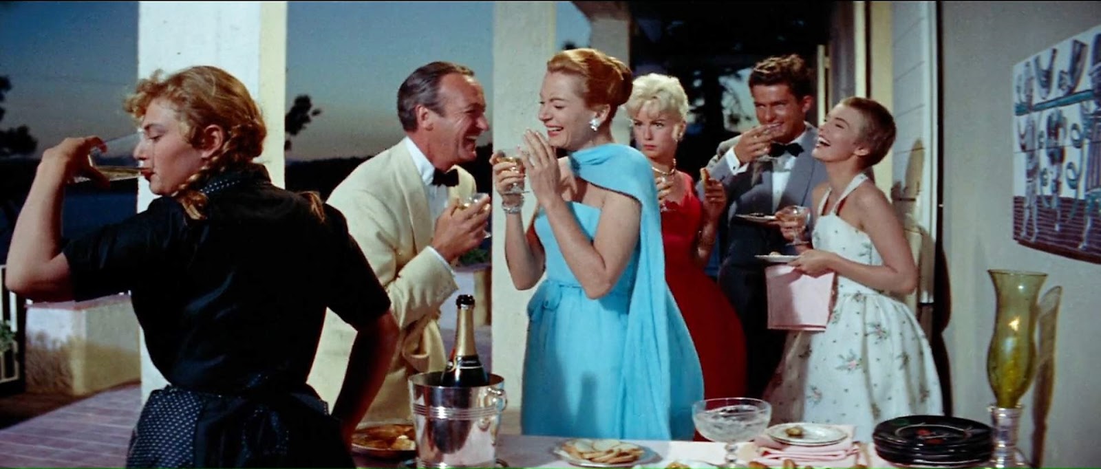 Even the pros are stranded. Niven was basking in the glow of Around The World In 80 Days and Kerr was fresh off a two-fer, the winning Heaven Knows, Mr. Allison and very popular An Affair To Remember. They’re better than the kids, of course, but even they can do little against the cross-Atlantic headwind of Arthur Laurent’s script, chatter alternately ‘deep’ (i.e. vague) or so artificial you wonder if he’d ever heard people actually talk. Not helping anyone is that post-dubbing is obvious. Add a ‘wild’ seaside party that screams “staged!”