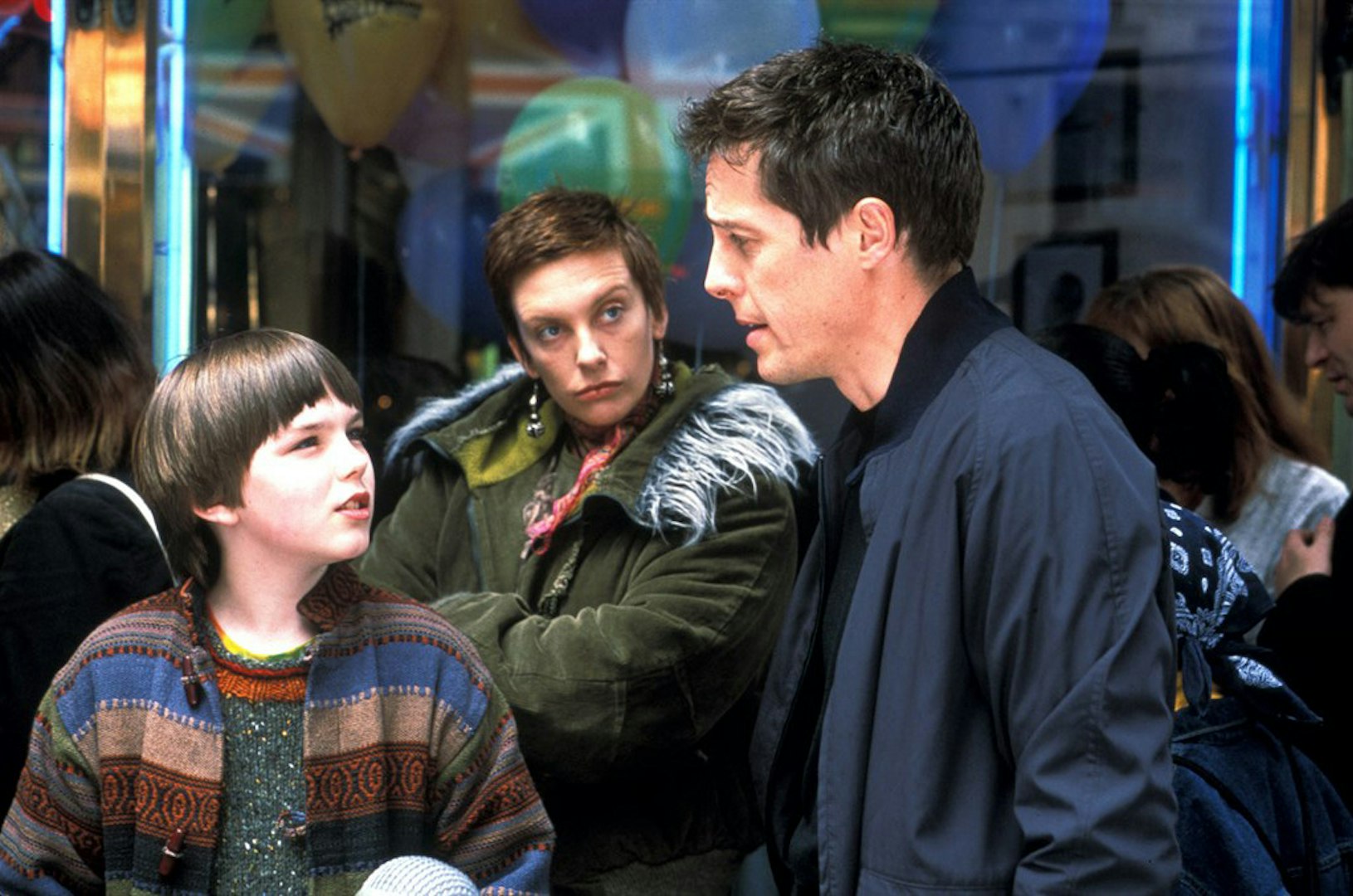 ‘Will Freeman’ (Grant) lives a lazy bachelor’s life in his London flat, not bothered with a job since his father made a pile on a Christmas song and left Will with the royalties. Doesn’t want marriage or kids, instead content with skating thru brief flings, using lonely single mothers as his ‘field of play’. When one of his targeted dates (this bloke’s a ‘right cad’) brings along the socially awkward son of a friend, the day goes from frustrating to frantic after they drop young ‘Marcus’ (Hoult) at his home and find that his depressed mother ‘Fiona’ (Toni Collette) has attempted suicide. During her wobbly recovery, lonely Marcus (bullied at school, friendless) forges what amounts to a uncle-nephew relationship with wary Will that bonds and changes them both. That doesn’t mean issues and problems go away.