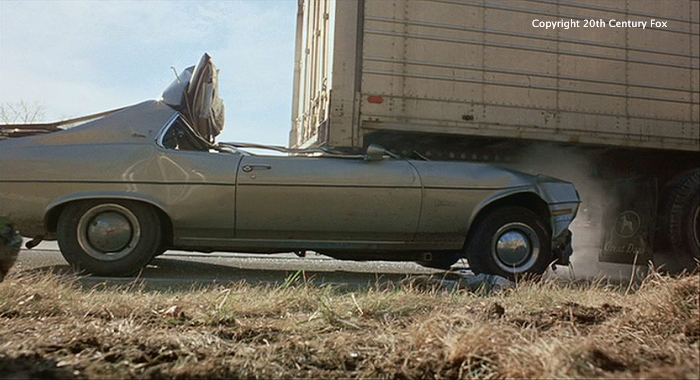 When the warning “Oh oh. We got company. Hold on!” arrives, buckle up for one of the more famous of the era’s chase scenes, a 10-minute screecher when Scheider goes hell-on-wheels after bad guys Richard Lynch (creep nasty) and Bill Hickman (icy cool), in a speed duel between two ’73 Pontiacs, a Grand Ville bearing Lynch and Hickman and a Ventura Sprint coupe steered by Scheider. In time-honored tradition, geographical alignment takes a back seat to dramatic purposes as the zooming takes in Manhattan’s Upper West Side, the George Washington Bridge, New York’s Taconic State Parkway and Saw Mill River Parkway as well as the Palisades Interstate Parkway in New Jersey.