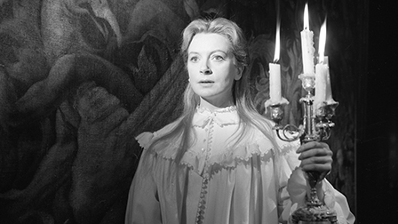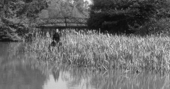 Immediately arresting, progressively absorbing, decidedly unsettling, it’s elegantly precise in detail and execution yet purposely puzzling so as to invite interpretation. Braced (literally kissed) with a subtext theme of sexual corruption and repression both subtle and daring, the delivered jolts are built by shared unease (characters and viewers fuse) instead of fastened in for cheap and easy scares. Atmosphere and effect are mood crucial: the lighting and focus choices of cinematographer Freddie Francis work a black & white triumph in capturing the exteriors (lush Sheffield Park in East Sussex and a country mansion in the Gothic style) and interior sets that are simultaneously capacious and claustrophobic; Jim Clark’s expert editing does wonders with dissolves between scenes; the sound crew excels, thanks to John Cox (The Bridge On The River Kwai, Lawrence Of Arabia) and Daphne Oram (the weird electronic effects—she next amped the oddness for Dr. No); the music is scored with subdued eeriness by Georges Auric (Moulin Rouge). That ‘haunting’ song that accompanies the titles, “O Willow Waly”, was sung by folk artist Isla Cameron (1927-1980).