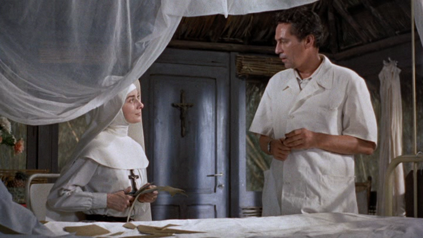 Belgium, 1927. ‘Gabrielle van der Mal’ (Hepburn) leaves behind her family and worldly goods, and takes on a new name as she enters a new life—as a nun in the Sisters of Charity of Jesus and Mary, a convent training nurses. Her father (Dean Jagger) is a prominent surgeon specializing in tropical medicine, and as ‘Sister Luke’ she hopes to follow in that field and use her skills in Belgium’s colony in Africa, the Congo. Over the course of 17 years Sister Luke will train and excel as a nurse as she dutifully learns, patiently follows and continually adjusts to the strictures of daily conduct demanded by her order and the decisions it makes regarding her assignments. Her service takes her to work in a mental hospital in Brussels, eventually to an arduous stretch in the Belgian Congo, finally back to Belgium during the Nazi occupation in World War Two. During all this, beneath her habit the remade Sister Luke is still Gabrielle, and Gaby’s sense of self and independence are repeatedly strained by doubt and disappointment, duty vs. conscience, adherence vs. submission, faith vs. calling.
