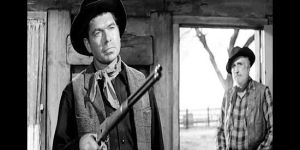 THE LONELY MAN lays out a downbeat tone from “Howdy” on, with a mournful title tune sung by Tennessee Ernie Ford. It doesn’t get any cheerier over the 88-minute running time, unless snorts of derision count over being asked to accept Anthony Perkins as the whimpering drunken son of glum gunfighter Jack Palance. ‘Adult’ westerns of the 50’s went in for saddle bags that toted neuroses and guilt along with beans and coffee; this 1957 downer packs enough morose woe-are-we to hobble a mule team.