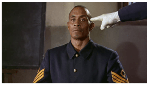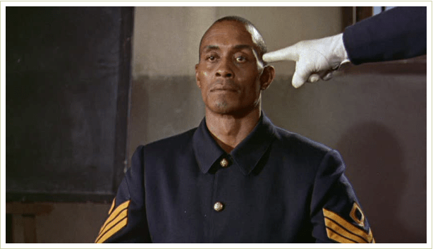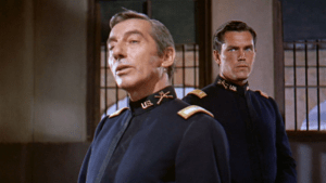 1881, Arizona Territory. A valued 1st Sergeant in the 9th U.S. Cavalry (a “colored” regiment, with white officers), ‘Braxton Rutledge'(Strode, 45) is facing a court martial, accused of the rape & murder of a white girl and the murder of her father, his commanding officer. ‘Lieutenant Tom Cantrell’ (Jeffrey Hunter) is assigned to defend Rutledge, a lopsided task not helped by incriminating circumstantial evidence, the relentless, often vicious efforts of the prosecution and overall ingrained community racism. The heroism displayed by Rutledge in fights against Apache raiders only counts for so much.