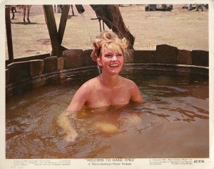 ‘The Man From Bodie’ (Aldo Ray), embodiment of pure malice, swaggers into the Dakota Territory hamlet of ‘Hard Times’ (so absurdly sparse it makes the town in Shane look like Boston), rapes, murders and then burns the place to the ground. He’s so gross that he bashes open bottles of whiskey (apparently he can chug glass), so diabolical he shoots his own horse. Sated, he rides off cackling, leaving the stunned survivors to ponder their collective cowardice. Later, after new arrivals (complete with a gaggle of knockout hookers—so much for revisionist frontier realism) help rebuild the burg The Man returns for a fresh rampage. By the time the vicious, boring and flat-out stupid 103 minutes cease wheezing and croak, you may feel the sort of fool-fueled rage as Ray’s character, for the moviemakers who dumped off this manure load of phony masochistic barf. Burt Kennedy wrote some neat Randolph Scott westerns. His later directorial record swung between hits to 3rd base (The War Wagon, also ’67) and Support Your Local Sheriff and satisfactory lopes to 2nd (The Rounders), to bunts (Return Of The Seven, The Train Robbers, The Good Guys And The Bad Guys) and then humiliating strike-outs (Hannie Caulder, The Deserter). This punk whimpers at the bottom of the dugout, and is especially galling for dragging a great cast team. Besides Fonda (the lamest character he ever played), among the pros vainly doing what they can are Janice Rule (with an iffy Irish accent; she’s assaulted, burned and in the idiotic finale, killed), Keenan Wynn (killed by mistake), Warren Oates (murdered), Janis Paige, Fay Spain (raped, murdered) and Arlene Golonka.