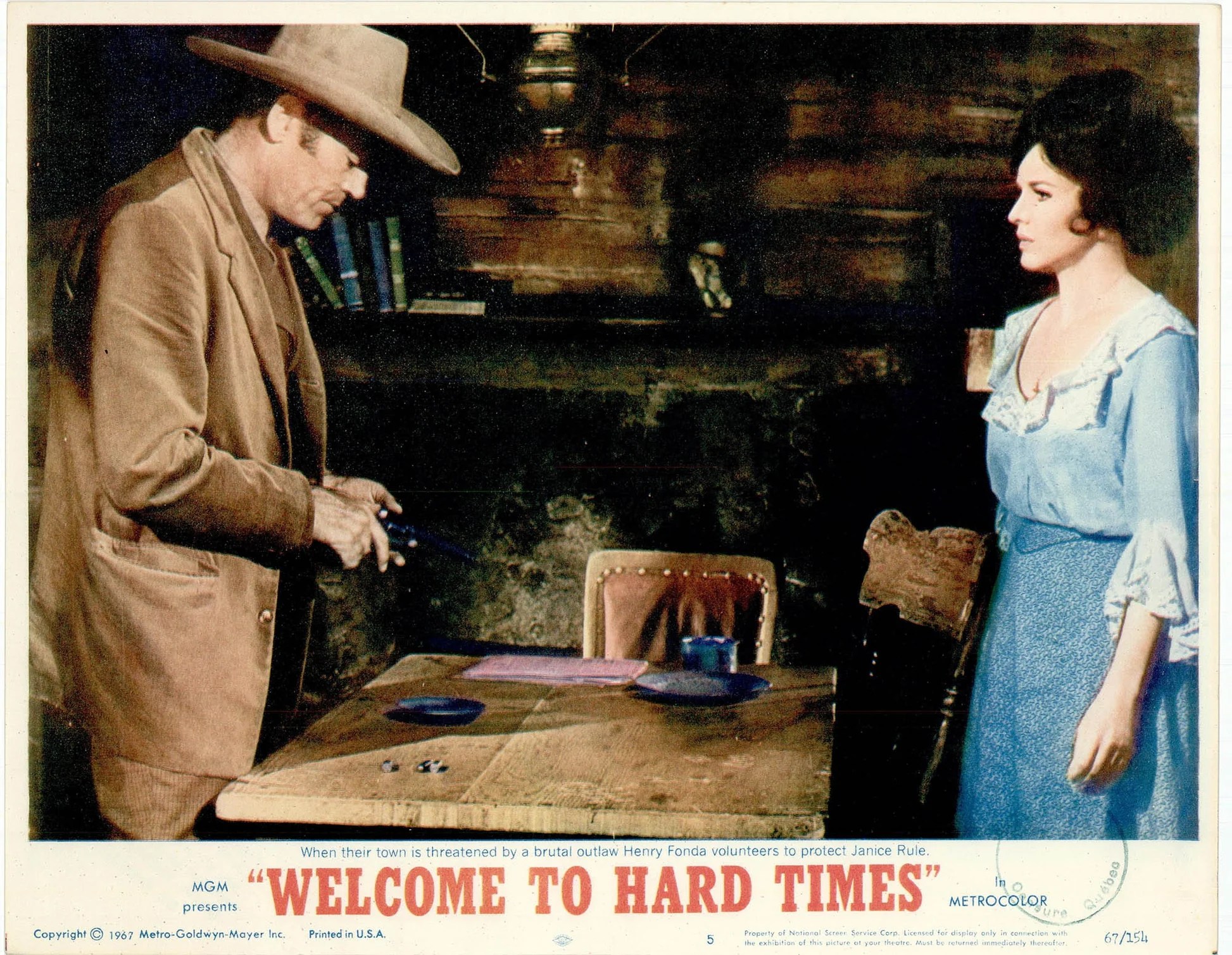 WELCOME TO HARD TIMES—no kidding. If this isn’t the worst western of 1967, it’s only because it vies to be the worst of the decade. E.L. Doctorow’s 224 page 1960 novel, his first, drew rave reviews and was one of those revisionist ‘new looks at the old’ that flooded the period. Trying to wade thru his 1975 opus “Ragtime” turned me off to his approach and style (not salvaged by yawning thru the 1981 film version) enough that picking up his debut tome is at the tail end of a long list of “maybe, next life” jots. That admitted, we’ll take the high road and presume it must’ve had enough trueish grit to attract writer-director Burt Kennedy and star Henry Fonda to commit filming this six years later. Intended for TV, deemed too violent (like 1964’s The Killers—this is way worse, and a ton less fun) it instead slunk into theaters on May 1st of ’67. Bad reviews and public rejection (118th place, $1,5oo,000) slapped it back onto TV six months later, the swiftest turnaround ever (the prehistoric days before streaming and instant dissatisfaction). I first watched it as a 12-year-old, around when I started compiling lists of movies (the 17-pound Royal typewriter days), rating them from zero to 100. The original list is gone with Democracy but something similar to memory hints ‘Welcome‘ got maybe a 10. Seen fresh a mere 58 years later and whaddya know—the kid was right the first time. *