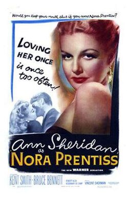 NORA PRENTISS, noirish ‘tainted love’ melodowner from 1947, didn’t impress self-lofted critics at the time, but it scored well enough at street level to rank 54th for the year, the take of $6,000,000 canceling out the $1,487,000 tab.Though the script drummed up by N. Richard Nash fetches a risk too far, any excuse to watch Ann Sheridan is justified. While advertising pushed the sex-bait angle for Nora, with 32-year-old Sheridan’s studio-established nickname of “Oomph Girl” still roaming at large, her character in this cobweb of deceit isn’t a predatory spider-lady but a victim, one of several, of circumstances and choices spun out of control.