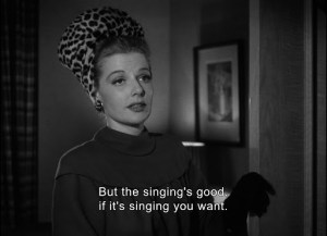 ‘Dr. Richard Talbot’ (Kent Smith) is successful and respected in his San Francisco practice, twenty years married, two adoring teenage kids, a house overlooking the Golden Gate Bridge. Straight-laced into dullness, he’s also henpecked into the coop by buzzkill wife ‘Lucy’ (Rosemary DeCamp). When a truck-pedestrian close call has him checking the almost-clobbered ‘Nora Prentiss’ (Sheridan) he finds out she’s more than okay; her frank, close-to-flirty manner ruffles him enough to follow up with an unofficial house call, dropping by to catch her lounge act as a singer in a nightclub. When Lucy and the kids are away for a few days, Richard goes out on the proverbial limb (he’s already had a good look at Nora’s limbs) and he and Miss Prentiss go on a date. One gesture leads to another, just like a pebble can provoke a landslide. Handbasket + ticket = destination.