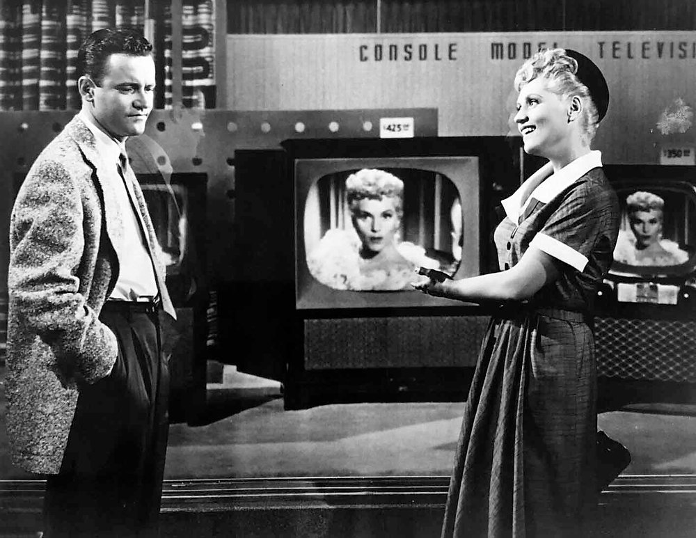 * The pitfalls of celebrity had been explored before (plus ’54 offered the best A Star Is Born) and Madison Avenue was tweaked as early as 1947’s The Hucksters. But the mid-50’s saw a burst of corporate culture critiques: serious slings (The Man In The Gray Flannel Suit, Executive Suite, Patterns) and comedic arrows (Artists And Models, The Solid Gold Cadillac—with Holliday, Will Success Spoil Rock Hunter?)