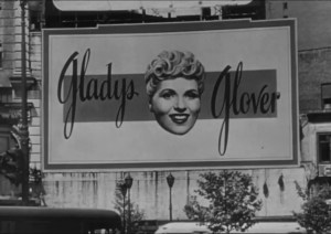 New York City. Documentary maker ‘Pete Shepherd’ (Lemmon), filming faces and scenes in Central Park, comes across ‘Gladys Glover’ (Holliday), footloose and down in the dumps after being fired from her job. Their pleasant meet-up (NYC hasn’t put out the welcome mat for either of them) promises possibilities when Pete moves into the same building Gladys lives in, and on the same floor, yet. But happy motoring hits a construction zone after Gladys—naive but no fool—has a brainstorm and puts her savings into renting a billboard that dominates the busy arterial Columbus Circle. Just her name, 30 feet high. When ‘Evan Adams III’ (Peter Lawford)—the slick rich guy who usually rents it for his soap company—tries to buy out her time, she digs in. Then the public curiosity (“Who is Gladys Glover?”) is turned into a money machine by ambitious huckster ‘Brod Clinton’ (Michael O’Shea) and ambitious yet honest Gladys becomes a commodity. Savvy deal maker Brod’s raking in dough, sportscar-wielding Evan aims to seduce her, everyman putz Pete is left in the usual position that ‘nice guys’ assume. *