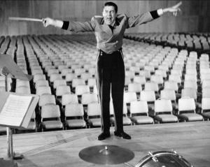 The plot: non-existent—or, if you’re a Lewis fanatic—existential. The place: Miami Beach, the Fontainebleau Hilton. Among the platoon of busboys is mega-klutz ‘Stanley’ (take wild guess), who is silent but deadly as he wreaks havoc in three dozen blackout vignettes. Some are elaborate and/or clever, some are dumb and/or annoying. The silent part is that Stanley only has a few lines of dialog, so you’re mercifully spared his infantile “The Kid” character with the baby talk voice. He has a few more lines, not as Stanley but when he does a cameo—as Jerry Lewis—yes, in his own movie, sharing one scene with guest ham Milton Berle (as himself). **