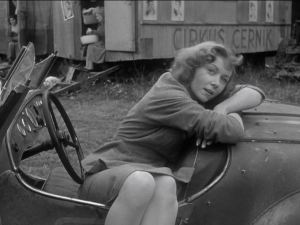 In one of his least-known films, March gives one of his best performances; Karel’s a great character—strong yet frightened, wise but fallible, canny, humorous and energetic, brave and desperate. Under Kazan’s guidance, Grahame, 29, reins in her occasional tendency to overplay; she’s very good as the sexy, frustrated Zama. Adolphe Menjou does smart work as ‘Fesker’, the calmly crafty supervising policeman tasked with making the State’s case against Černík. Robert Beatty has a plum part as the piratical ‘Barović’, a wily rival circus owner; he and March share a marvelous scene staging a fight as cover for a mutually beneficial deal. Even Moore, cringeworthy that year in Beneath The 12-Mile Reef and King Of The Khyber Rifles, surprises by doing well here.