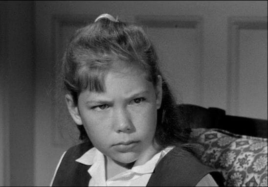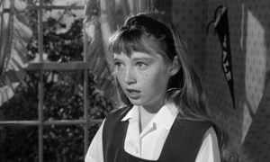Veronica Cartwright was uncredited in a bit for 1958’s In Love And War and (like her sis Angela) had logged some TV shows: at 12 she made her feature debut here and shows the sort of brittle energy she’d later bring to bear in Alien, The Right Stuff and The Witches Of Eastwick. As her tormentor and the bane of everyone else, 11-year-old Karen Balkin’s raw ferocity as Mary gives Bonita Granville’s demon spawn a run for the dungeon. Watching her brought back vivid and unwelcome memories of a couple of virulently nasty little shrikes from grade school; pure mean for the warped fun of it (I’ll drop the age-brings-wisdom compassion bit and publicly declare that I sincerely hope they got what they were bent on deserving). For whatever reasons, after this Miss Balkin only appeared in two TV shows and one movie, 1974’s Our Time, coincidentally a drama about young women in a boarding school. Glenn Erickson gives it a positive review.