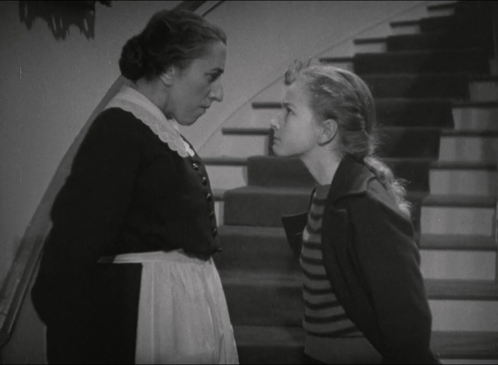 Spicy Hopkins and cool Oberon were both in demand at the time: enjoyment of the movie may depend on their appeal to the viewer; I fess to never being much taken with either, and find their theatricality (along with Doucet’s and Kruger’s) a wee too dated to convince. McCrea’s all right, no more, and Joe’s a cipher role. The crucial key to the piece is the banzai performance from Granville, marvelously horrid as a kid from planet Malice. Her wingding tantrums were startling enough that she pulled one of the first Academy Award nominations in the new category of Supporting Actress, albeit losing by a glare to another formidable meanie, Gale Sondergaard, the villainous ‘Faith Paleologus’ in Anthony Adverse. Granville’s hell-demon dominates but there are other excellent child actors on hand, too, as the kinder students, particularly Marcia May Jones and Carmencita Johnson.