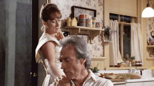 What he did worked: fitting into her astounding body of work, once again thru artist’s alchemy she became who she was playing. The difference the right script can make vs. where it came from can be illustrated and draw smiles from the initial reactions both she and Eastwood had to the book. She’d described it as “a crime against literature” and he’d joked that “For an actor to say that stuff you might have to do it during a saloon scenes when he looks like he’s had about ten beers.”