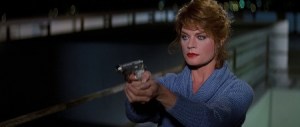 Both tongue-in-cheek and pointed, the thrust is that runaway greed (‘calling Capitalism on lines 1 thru 1000’) is so pervasive and destructive, so inhumane it may as well be from another, less welcoming place in the universe, a Fascist galaxy. An epic-scope premise, but done effectively enough on a $3,000,000 budget to put it across with limited but okay special effects, neat art direction, cool creepy makeup and plenty of fast, comic-book’y action. Piper’s experience from role-playing as a wrestler fits readily into toned-down screen acting, confident without going too broad to nix the mood or flub the gag. Brought back from his great slice of intensity in Carpenter’s The Thing, David once again wins audience allegiance as one of the best character actors of the modern age. Meg Foster adds a level of unease with those piercing eyes, so out-of-the-norm you wonder if maybe she comes from somewhere more distant than Pennsylvania.