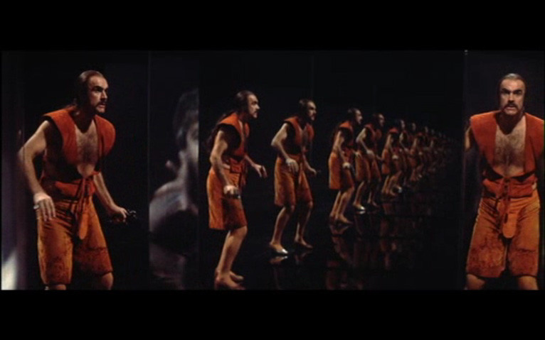 As a dyed-in-the-ejector seat fan of Connery from 5th grade on, I dutifully trooped in to see this when it came out. At 19 either I was extra informed (okay, stoned) or was just like many who saw it, because (aside from ample nudity), I regarded it as what used to be called a “bummer”. Viewed anew decades later and having seen 59 of the 67 feature films he appeared in, including woofers like Meteor, Shalako, Wrong Is Right and Presidio (only profit points would have me to submit to Highlander II: The Quickening) it seems obvious, even to a dull-witted, soil-raking Brutal, that while The Terrorists is the most boring and The League Of Extraordinary Gentlemen the most disappointing, this star voyager’s prize winner for Most Aggressively Weird belongs to the dazing maze that is Zardoz. Box office in the US was $5,500,000, 62nd place in 1974. *