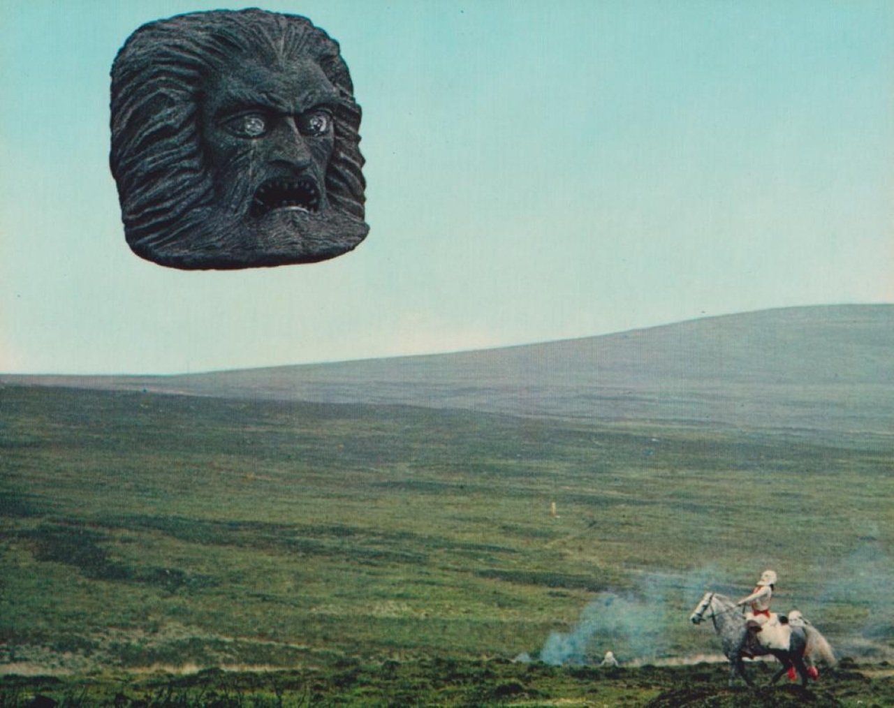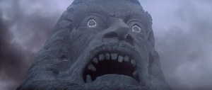 The year 2293. Greed, pollution and lawlessness have turned the battered Earth into zones inhabited by separate and distinctly different classes. Intellectuals, the ‘Eternals’, live sheltered in ‘the Vortex’, protected by a force field, indolently whiling away their unending lives, sexless (yet sexily garbed, go figure), bored and pretty much insufferable. Outside the shield are the ‘Brutals’, serf-like masses eking out survival. Their numbers are kept in check by the gun-packing ‘Exterminators’, who worship ‘Zardoz’, a God being who appears as a giant head floating thru the sky (Gods live in the sky because…they just do). Zardoz dispenses firearms along with booming nuggets of wisdom like “The Gun is good!” and “The Penis is evil!” When enthusiastic exterminator ‘Zed’ (Sean Connery) hitches a lift on the hovering head (hey, keep your crass thoughts to yourself) and pierces the Vortex, his raw, unrefined masculinity fascinates the foofy Eternals, and their elitist attitudes begin to fray. There’s a lot more, including the ‘Apathetics’ (I dated one, briefly; she stopped caring before I did), the ‘Renegades’, the ‘Crystal’ and the ‘Tabernacle’ (and less we forget, the costumes) but trying to explain it (sense-making not an option) won’t help the enjoyment quotient of its tail-chasing tangle, adroitly summed up by critic Will Thomas in Empire magazine as a “hodge-podge of literary allusions, highbrow porn, sci-fi staples, half-baked intellectualism and a real desire to do something revelatory.” All that and less.