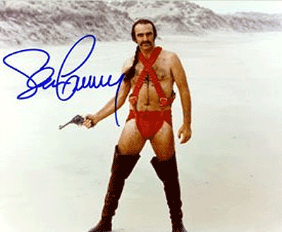 * Sean self-beaned— “It was one of the best ideas I’d come across in ages…What gripped me especially was the direction the people in it were taking in their future existence, as opposed to spaceships and rockets and all that…I’m not a science-fiction buff. What does interest me is the possible development of society in centuries to come. ” Hey, if John Wayne could get smashed and saddle up as Genghis Khan, Clint Eastwood pretend to ‘sing’ in a musical and Russell Crowe and Ridley Scott risk romantic comedy, we can cut The Master of the Aston Martin DB4 slack for wearing thigh high leather boots, a red bandolier and a loincloth. With a ponytail.