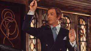 Though he was noted for writing the scripts he directed, this time Mankiewicz ceded that chore to Anthony Shaffer (screenwriter for Frenzy, The Wicker Man and Death On The Nile) who adapted his own Tony-winning play. On Broadway, it ran 1,222 performances, with Anthony Quayle and Keith Baxter. Able as they were, they weren’t going to have any pull at the box office: enter Mike & Larry.