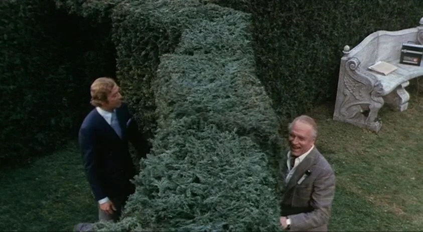 Famed crime fiction author ‘Andrew Wyke’ (Laurence Olivier) invites hair salon owner ‘Milo Tindle’ (Michael Caine) to his decorously appointed country house to propose something mutually beneficial. Andrew prefers his mistress ‘Tea’ over his shrewish wife ‘Marguerite’, whom the younger Milo has been having it on with. He suggests staging a robbery: Milo ‘steals’ his wife’s jewels, Andrew covering the loss thru insurance, Milo using the money to support Marguerite and expand his business while Andrew and Tea can live more happily ever after. But there’s a catch, several. Tables are turned, then turned again. Who’s in charge of this alternately merry and malicious chase, what are the real reasons for playing and what may be the results?