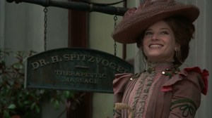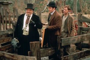 Shot on location at the Mohonk Mountain House near New Paltz, New York, and in Wilmington, North Carolina, the production is lavishly appointed in the sets, props and a battalion of milling extras, decked out in 1,200 period costumes. Rachel Portman’s bouncy score gooses the fad-flamed hopeful lunacy into some very amusing vignettes, and the cast have a field day romp with the Coen-like characters and all around, all-American weirdness. Cusack, Fonda and Broderick are most adept at fluster, Carvey is merrily deranged, Lerner gets his best chance to shine since Barton Fink and there are numerous plum turns in support, with standouts from John Neville and Colm Meaney. Best of all, Hopkins gets rein to cut loose in a delightful, overlooked comic performance as the pontificating guru, bombastic but sincere; equipped with toothy makeup, he chomps into every syllable like a breathless blend of Teddy Roosevelt and Bugs Bunny.