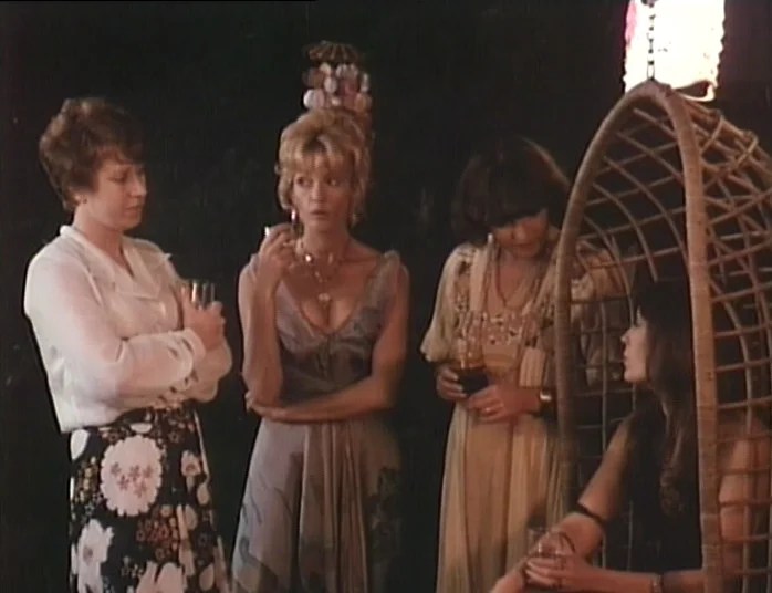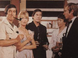 For an election night celebratory booze-up, schoolteacher ‘Don Henderson’ (John Hargreaves, 30) has invited some old college pals and a few other unconnected friends. Wife ‘Kath’ (Jeanie Drynan, 36) isn’t overjoyed at the prospect, her placid-looking exterior shielding pent-up anger. John’s closest mate, gleefully abrasive former psychologist ‘Mal’ ((Ray Barrett, 51) drags bitter, humorless spouse ‘Jenny’ (Pat Bishop, 30, feature debut) along, while carefree, perpetually randy lawyer ‘Grainger Cooley’ (Harold Hopkins, 32) shows up with teenage student/sex bomb ‘Susan’, (Claire Binney, 22, debut) his ‘shag for the night’, who from “hello” on lets Don know that one thing she isn’t is shy. Not shy, just a blithering dork, accountant ‘Simon’ (Graeme Blundell, 30) is the proverbial stick-in-the-mud, but his vivacious wife ‘Jody’ (Veronica Lang) is determined to cut loose and have fun. That may be good news for recently separated ‘Mack’ (Graham Kennedy, 42), hovering amiably with a beer chained around his neck while various spats and schemes unspool. He’s certainly more chipper than snide dentist ‘Evan’ (Kit Taylor, 34) set to regret that his sensual artist wife ‘Kerry’ (Candy Raymond, 25) was invited, her heady boldness not confined to her paintings. Mal oozes to her “You have what’s called a sought-after quality.” It won’t do him much good (neither will a dozen beers), but his perception is shared in one glance from Grainger. Cats don’t even have to be away for some rats mice to play. Mind the barbie, crank the music, yell at the TV as an expected Labor victory turns into a brutal rout, and if the snooty neighbors can afford to be away on a trip abroad “they can bloody well let us use their pool!”