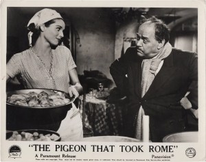 THE PIGEON THAT TOOK ROME flew into 1962 as a World War Two comedy—with Charlton Heston. Placement, theme and star don’t immediately start air raid sirens wailing “laugh attack incoming!” but there are worse examples in the mili-com subgenre. Missing in action today, it did okay at the time, and oddly enough, while you won’t find it on any medal of honor roll it’s not treacherous enough to be shot at sunrise either. Essentially the straight man of the piece, Heston doesn’t dishonor himself, and the other cast members do their assignments proficiently. Not a hit, but the $4,700,000 gross (62’s #52) adequately covered the budget bet. *