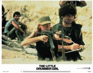 THE LITTLE DRUMMER GIRL gave Diane Keaton one of two serious roles in 1984, but both this and Mrs. Soffel failed to click with either public or critics. Mrs. Soffel, a fact-based period crime-romance with Mel Gibson, turned out to be a morose snore. This one, a fictional spy thriller lifted from a novel by John le Carré, has more action going for it, interesting characters and benefits from contemporary relevance since it deals with the never-ending misery in the Middle East.