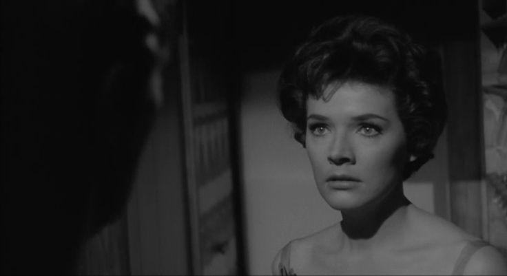 Tension commences with the first notes of Herrmann’s score, French horns sending an unmistakable aural SOS that something wicked this way comes. Something is someone in the case of Max Cady, though ‘thing’ ultimately seems more fitting: in concluding scenes his stealth slither thru a swamp is closer to reptilian than human. Peck and Mitchum, both 45, were each at the top of their game, and while Peck’s style and image glove-fit the intelligent and decent character of Bowden, the audience stand-in for relatable family man civility, he was canny enough as a producer to know the real focus would be on the bad—really bad—guy, who had to be someone of equal star-power status but with a definite and different aura and edge. Bergen, 31, is at her best (her melodramatic wingding in The Caretakers is close); her big scene of paralyzed fright is real enough to make your skin crawl. Martin, 14, does well as the targeted innocent. In sturdy support are Martin Balsam (frustrated police chief), Telly Savalas (private detective who tries to help), Jack Kruschen (Cady’s blowhard shyster) and Barrie Chase, 27, finally given a chance to do more than dance, in a few vivid scenes as the sultry pickup who makes the mistake of thinking a night with Max Cady might be amusing. A sixth sense is there for a reason. **
