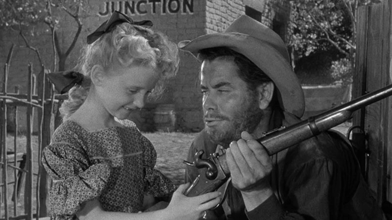 While parsing chuckles over the melodrama, film buffs can spot among the townsfolk such reliable ‘types’ as Trevor Bardette, Jay Silverheels, Antonio Moreno, Arthur Hunnicutt, John Doucette, Billy Gray, Percy Helton, Hayden Rorke, Tom Tyler and Will Wright. Decently photographed by Archie Stout. 90 minutes.