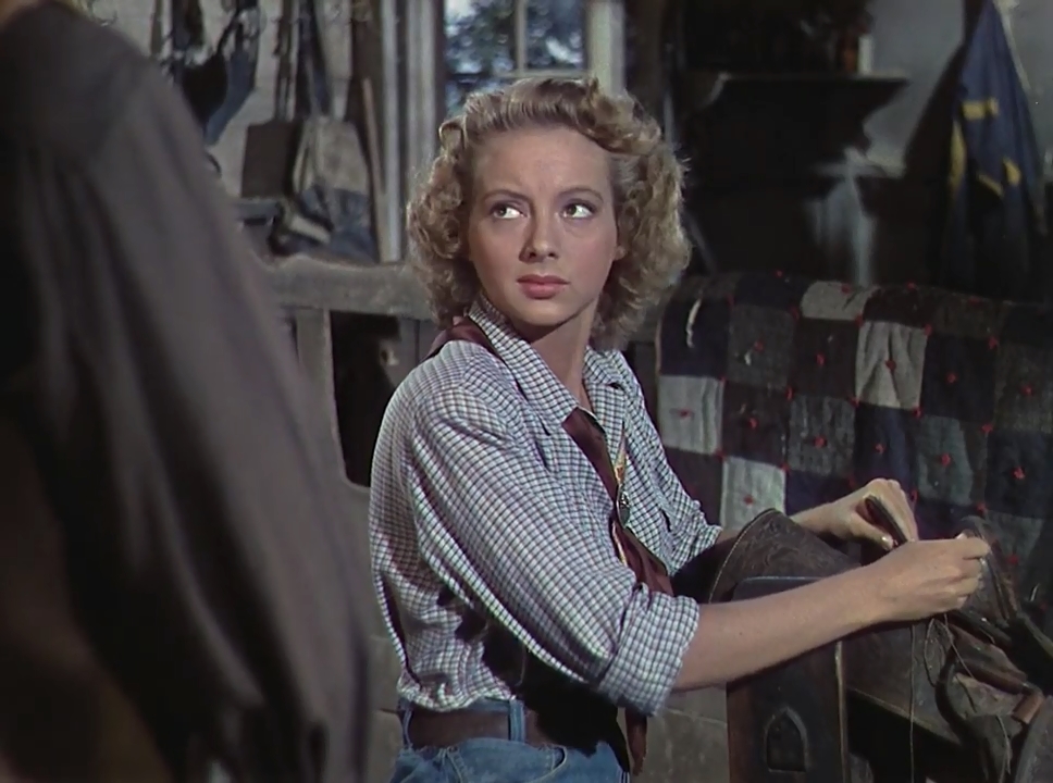 Utah, 1863. With a crooked banker, a corrupt judge and a bevy of outlaws on hand, straight-shooter ‘Sheriff Steve Upton’ (Randolph Scott) finds himself aligned with partial rascal ‘Cheyenne Rogers’ (Glenn Ford), who had been ready to participate in a bank robbery, but is given a chance at redemption by saloon owner ‘Countess Maletta’ (Claire Trevor). Among interested parties are ‘Uncle Willie’ McLeod (Edgar Buchanan), who was privy to the robbery Cheyenne missed out on, his feisty daughter ‘Allison’ (Evelyn Keyes) who hankers for Cheyenne, and ‘Nitro Rankin’ (Guinn Williams), Cheyenne’s dynamite-expert pal.