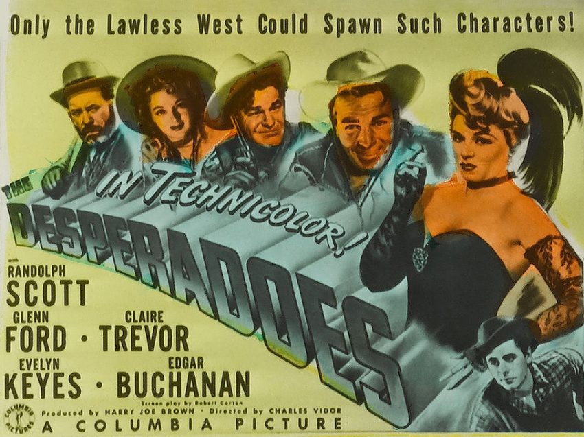 THE DESPERADOES rode into war-worried 1943 as Columbia Pictures first venture into Technicolor, a humor-infused western actioner directed by Charles Vidor (Gilda, Love Me Or Leave Me) with the script by Robert Carson (A Star Is Born, Beau Geste) coming out of a story by the phenomenally prodigious Max Brand. *