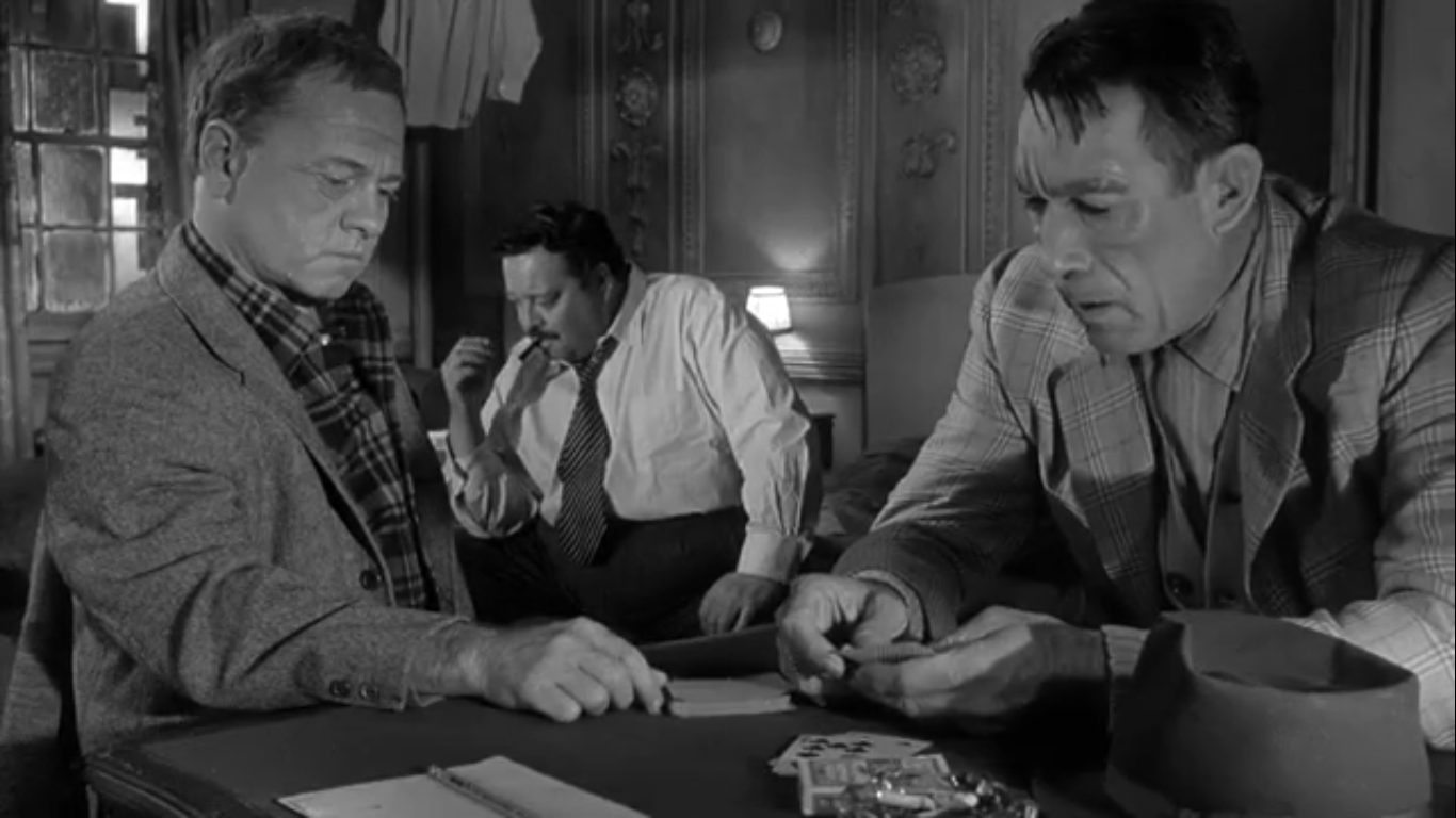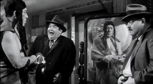 Harris, 36, shines as the hopeful social worker, a gentle outsider peeking into a closed circle of lost men; the role essentially sort of a surrogate witness for the audience. Quinn, Gleason and Rooney are simply outstanding. In the second half of his career, at 41 now a supporting character actor rather than a star, Rooney would deliver solidly as ever for another fifty-five years, in comedies and occasional dramas (Ambush Bay, The Comic, The Black Stallion); this role was his best among the dramas. Gleason, 46, had come back to movies after a long absence the year before with his ace contribution to The Hustler, but his multi-layered Maish is even better; it’s his top dramatic performance: the card game bit he and Rooney share is a classic, neither pro giving ground to the other but meshing in tandem brilliance. 1962 was very good for Quinn, 47, blessed not just with this tired and confused athlete-performer but by Lawrence of Arabia and an equally showy, decidedly more successful warrior. It would’ve been easy to go overboard with the pitiable Mountain, but he smartly doesn’t let either innate flamboyance or mawkish sentiment dominate and smother the characterization. It’s one of his finest pieces of work from the decade.